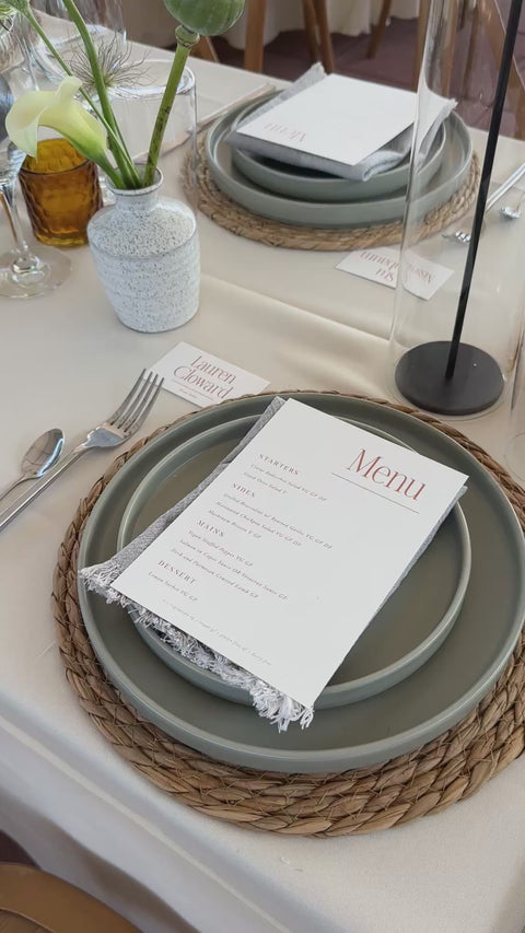 Add a touch of earthy charm to your special event with our Woven Rattan Charger. Perfect for weddings and events, this unique and playful charger is sure to impress with its rustic yet chic design. Rent now and elevate your tablescape with a touch of nature.
