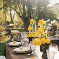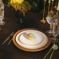 Add an air of sophistication to your next event with our Calendula Plates. These intricately designed plates feature a delicate gold rim, perfect for any wedding or event. Elevate your table setting and impress your guests with these luxurious rental plates.