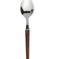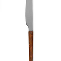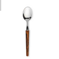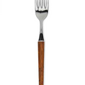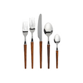 The Woodland Flatware Collection features acrylic burl wood handles paired with stainless steel heads for a striking contrast. Each handle tapers to a sharp, dramatic point, displaying a unique wood grain pattern that flows differently in every piece. This distinctive design brings a natural, refined touch that makes every dining experience truly special.