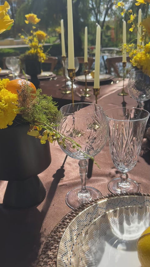 Make a toast with the Snapdragon Round Wine Glass! This unique glass features a cut design that will elevate any event or wedding rental. Cheers to a touch of elegance and a quirky addition to your gathering.